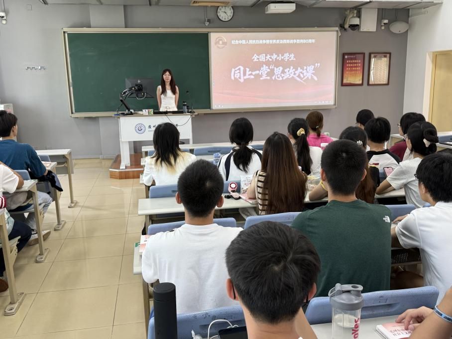为深入贯彻习近平总书记在纪念中国人民抗日战争暨世界反法西斯战争胜利80周年大会的重要讲话精神,充分发挥思政课立德树人主渠道作用,扎实推进大中小学思政课一体化改革创新,根据教育部《关于开展全国大中小学生同上一堂“弘扬伟大抗战精神做光荣自豪中国人——纪念中国人民抗日战争暨世界反法西斯战争胜利80周年”思政大课的通知》指示,9月18日至19日william威廉中文官网组织思政课教师随堂带领学生收看“弘扬伟大抗战精神做光荣自豪中国人——纪念中国人民抗日战争暨世界反法西斯战争胜利80周年”思政大课大学篇“大国担当”。主要情况如下:william威廉中文官网的林志彬、刘艳红、严云山、曹莉莉、李宁宁、邵程程、杨兴升等教师分别带领第一临床医学院24级临床中医学五年制2班、第二临床医学院2024级医学检验4班、第五临床医学院24级中医5班、第七临床医学院24级针灸推拿学5班、针灸康复临床医学院24级针灸推拿学1班、医学信息工程学院24级信息工程2班、24级生物医学、公共卫生与管理学院24级心理学2班和24级健康服务4班等多个班级学生观看,在回顾抗战历史、感悟大国担当的过程中,将中医文化传承与时代使命担当深度融合。