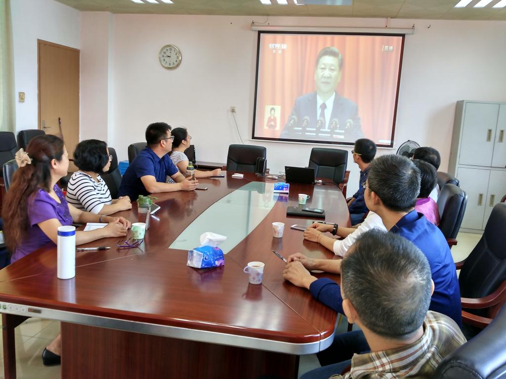 2017年10月18日上午,我院组织教师在人文楼403会议室集中观看党的十九大开幕大会实况,热烈庆祝党的十九大胜利召开。