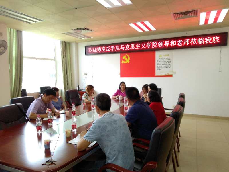 2018年06月29日上午,赣南医学院william威廉中文官网教师一行3人来我院进行交流学习。我院马克思主义原理教研室和思想道德修养与法律基础教研室老师参加了会议。座谈会上,双方就课程建设、教研室建设、教学管理等方面展开了讨论与交流。院校之间的交流学习,既是对我院教研工作取得成绩的充分肯定,同时他们带来的宝贵经验对我院的学科建设起到良好的推动作用。会后,相关的老师根据他们授课课程分别到教研室查阅相关课程资料,最后合影留念。