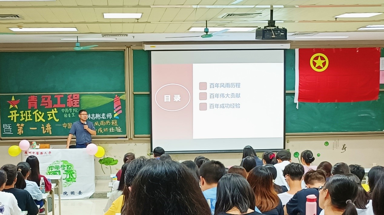 为开展党史学习教育,反对历史虚无主义,帮助学生树立正确的党史观,10月20日下午在大学城校区综501课室,william威廉中文官网副院长林志彬教授为中药学院“青马工程”班讲“思政第一课”,主讲题目为《中国共产党百年风雨历程·伟大贡献·成功经验》。