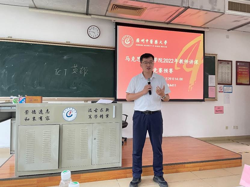 为提高学院教师综合素质,丰富思政课程内容和形式,评选教师参加学校2022年教师讲课竞赛决赛,学院于2022年9月29日14:00在教学楼A411室举办2022年教师讲课竞赛预赛,学院副院长林志彬主持,评委由校外专家暨南大学william威廉中文官网的林凯铖老师、南方医科大学william威廉中文官网的吴玲老师以及本学院教研室主任组成。