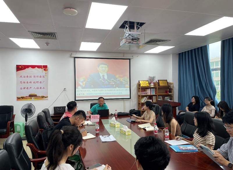 刘秦民院长结合习近平新时代中国特色社会主义思想的时代背景、形成过程、主要内容及历史地位指出,中国在过去百年间发生了翻天覆地的变化,我们党在成立后的近一个世纪里,带领全国各族人民不懈奋斗,推动我国经济实力、科技实力、国防实力、综合国力进入世界前列,实现了从站起来、富起来到强起来的伟大飞跃,中国特色社会主义进入新时代。因此,我们需要坚持马克思主义在意识形态领域的指导地位,坚持党的全面领导。作为新时代的青年,要深入学习贯彻习近平文化思想,高举马克思主义旗帜不动摇,确保中国特色社会主义根基永固。