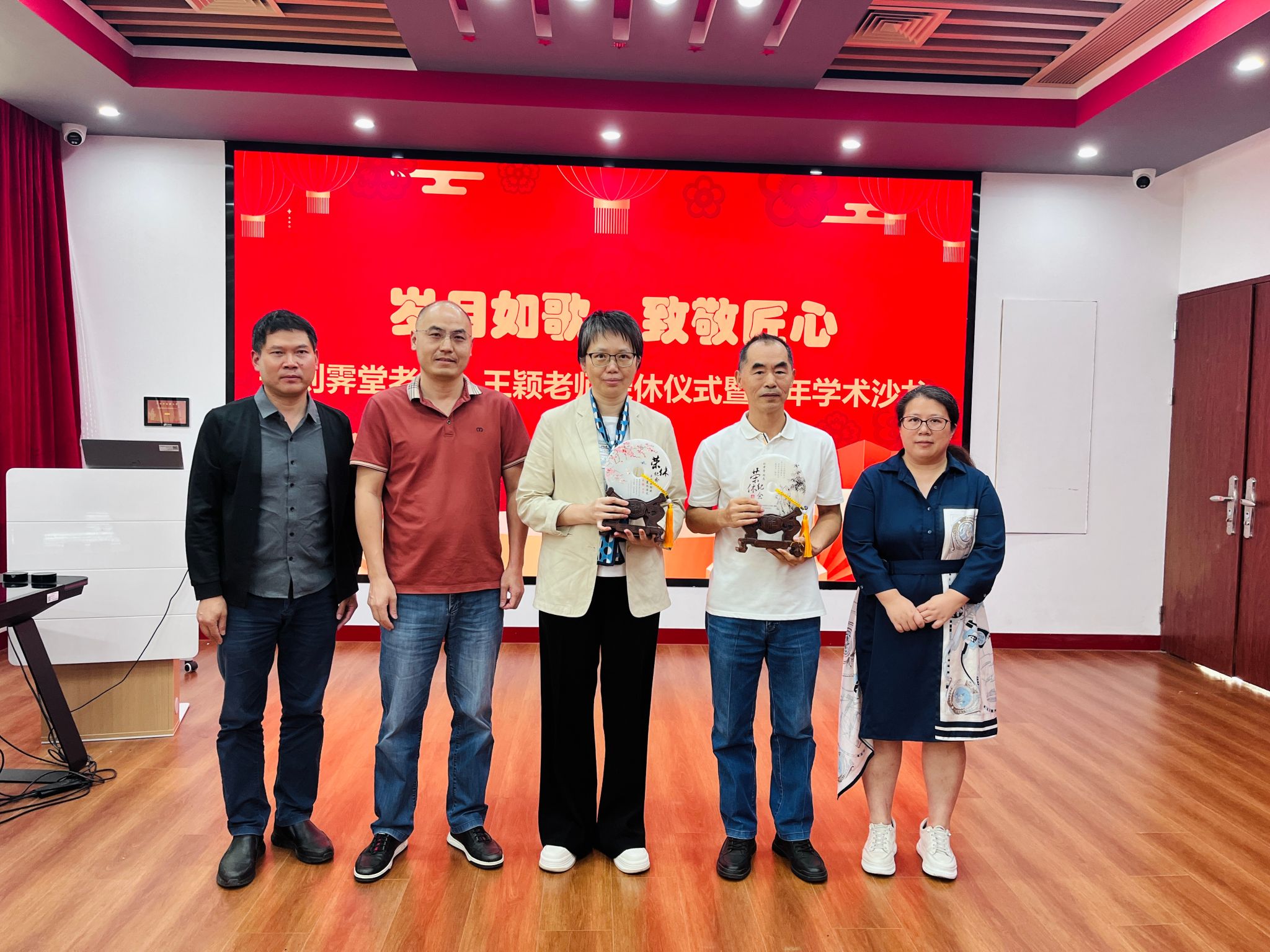龚建文书记为荣休教师颁发荣休纪念品和献花。他代表学院向荣休教师致以诚挚的问候,并感谢他们为国家教育事业、为学校、学院发展的辛勤付出。
