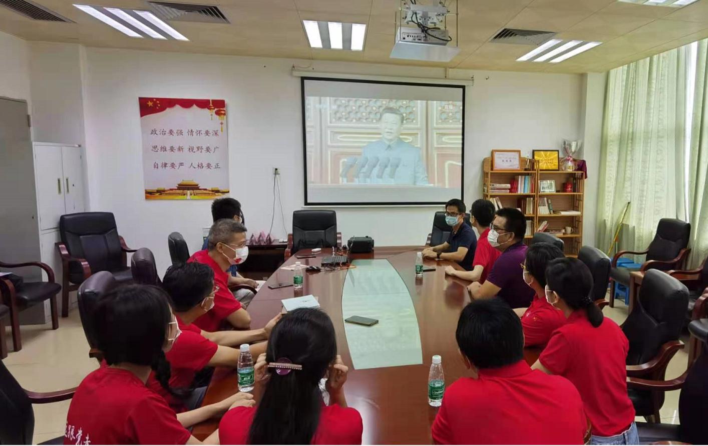 百年华诞,举国同庆。7月1日上午,庆祝中国共产党成立100周年大会在天安门广场隆重举行,习近平总书记发表重要讲话。马院党总支组织师生在人文楼集中庆祝大会直播,共同见证庆祝建党百年的辉煌时刻。习近平总书记代表党和人民庄严宣告,经过全党全国各族人民持续奋斗,我们实现了第一个百年奋斗目标,在中华大地上全面建成了小康社会,历史性地解决了绝对贫困问题,正在意气风发向着全面建成社会主义现代化强国的第二个百年奋斗目标迈进。这是中华民族的伟大光荣,这是中国人民的伟大光荣,这是中国共产党的伟大光荣。