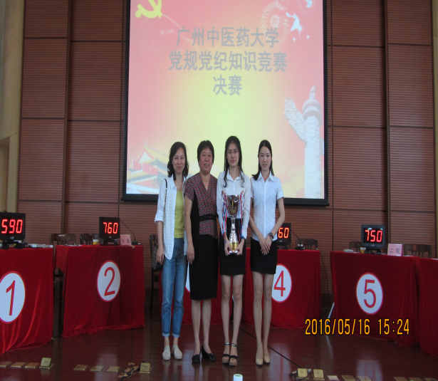 为了积极响应我校开展“两学一做”学习教育活动的要求,进一步引导党员尊崇党章、遵守党规,深入学习和掌握党章党规。2016年5月16日,由学校纪委、组织部、团委共同主办的广州中医药大学党规党纪知识竞赛在办公楼二楼学术报告厅隆重举行。我院由学院党总支书记袁毓玲、研究生代表付瑞玲和吴楠同学组队参赛。